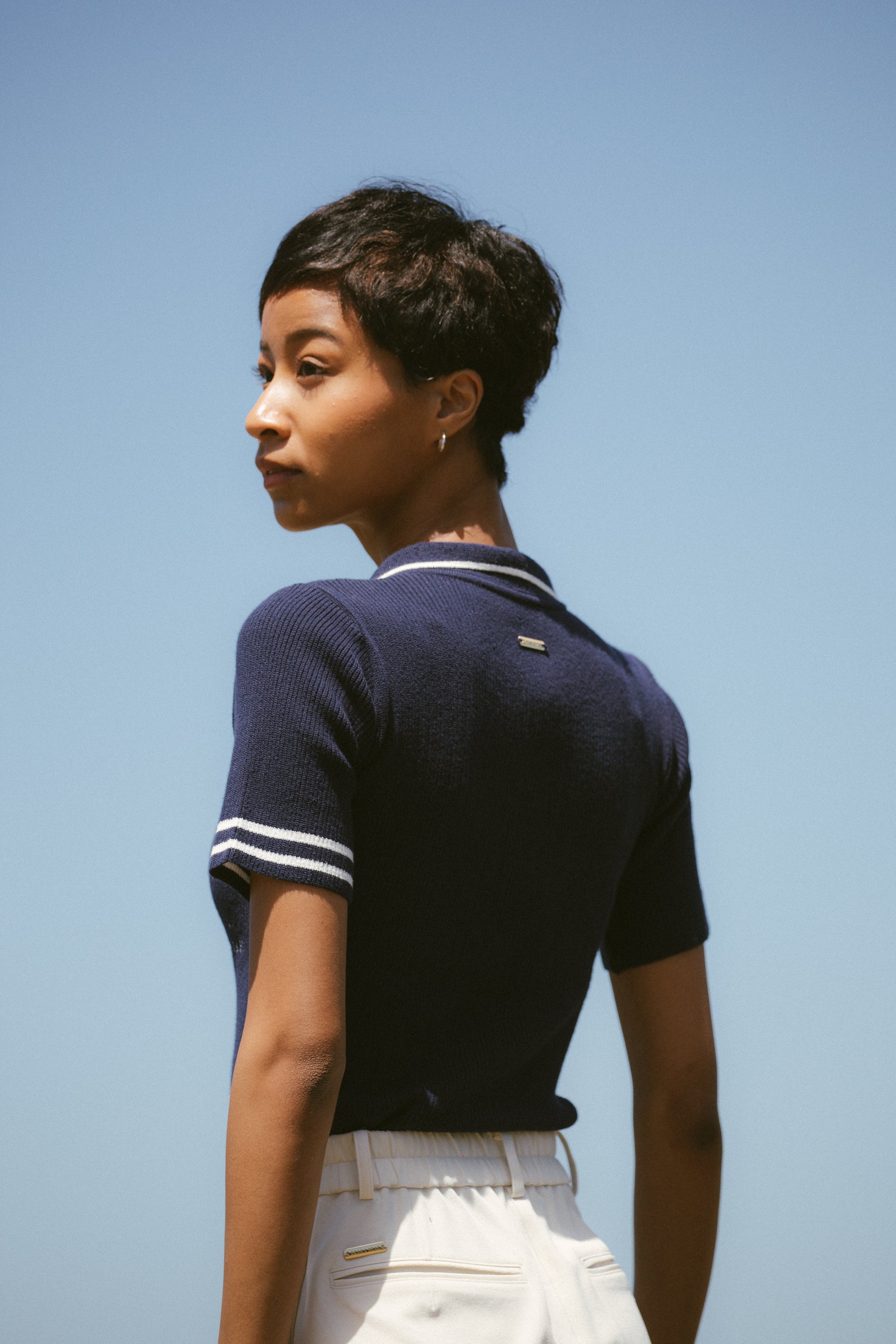 鮮やかな光沢感と柔らかさを持ち合わせた綿とレーヨンに上質なシルクを混ぜたリブ編みニットポロ。 伸縮性に優れ、袖や胸下に施されたEMAH&NOAHロゴ刺繍で上品さと快適さを兼ね備える。アクセントの襟や袖のバイカラーラインが爽やかなスポーティーさを演出。 ご自宅でのお洗濯も可能、臭いの元となる原因菌増殖を抑制する天然デオドラント加工を施し、使いやすさも抜群。 ゴルフシーンだけではなくデイリーにもお使い頂けるアイテムです。