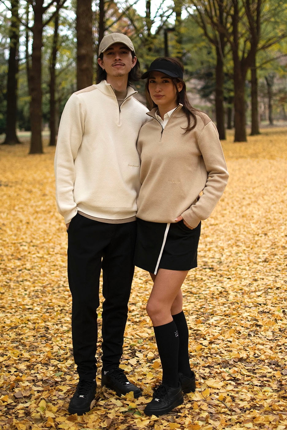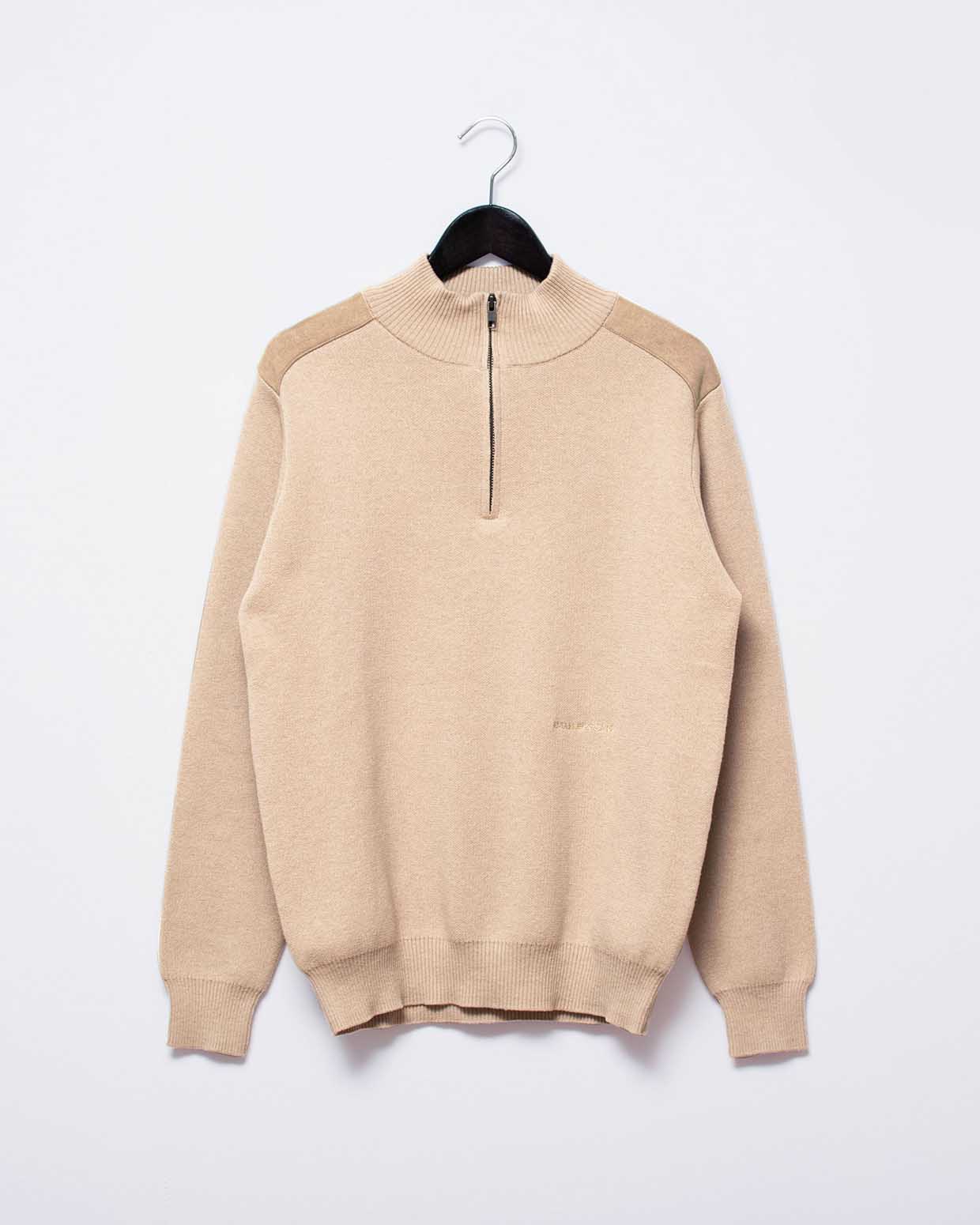 スエードパッチハーフジップセーター / ベージュ