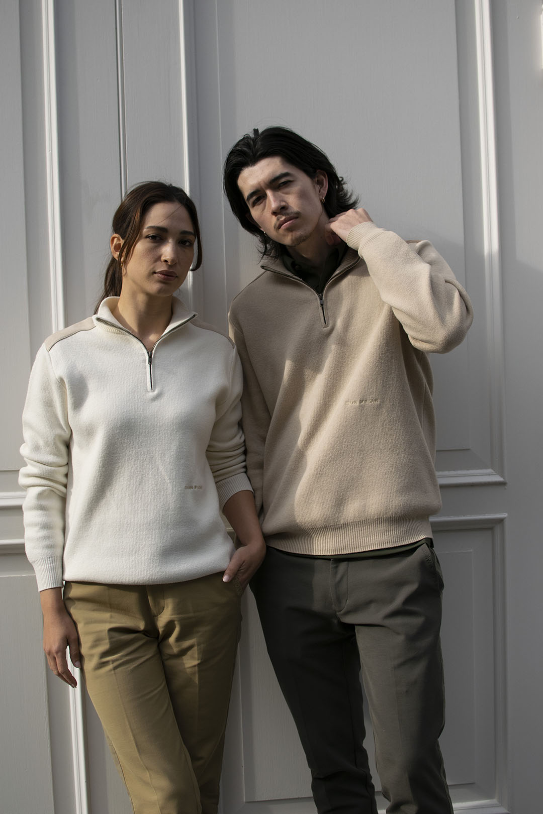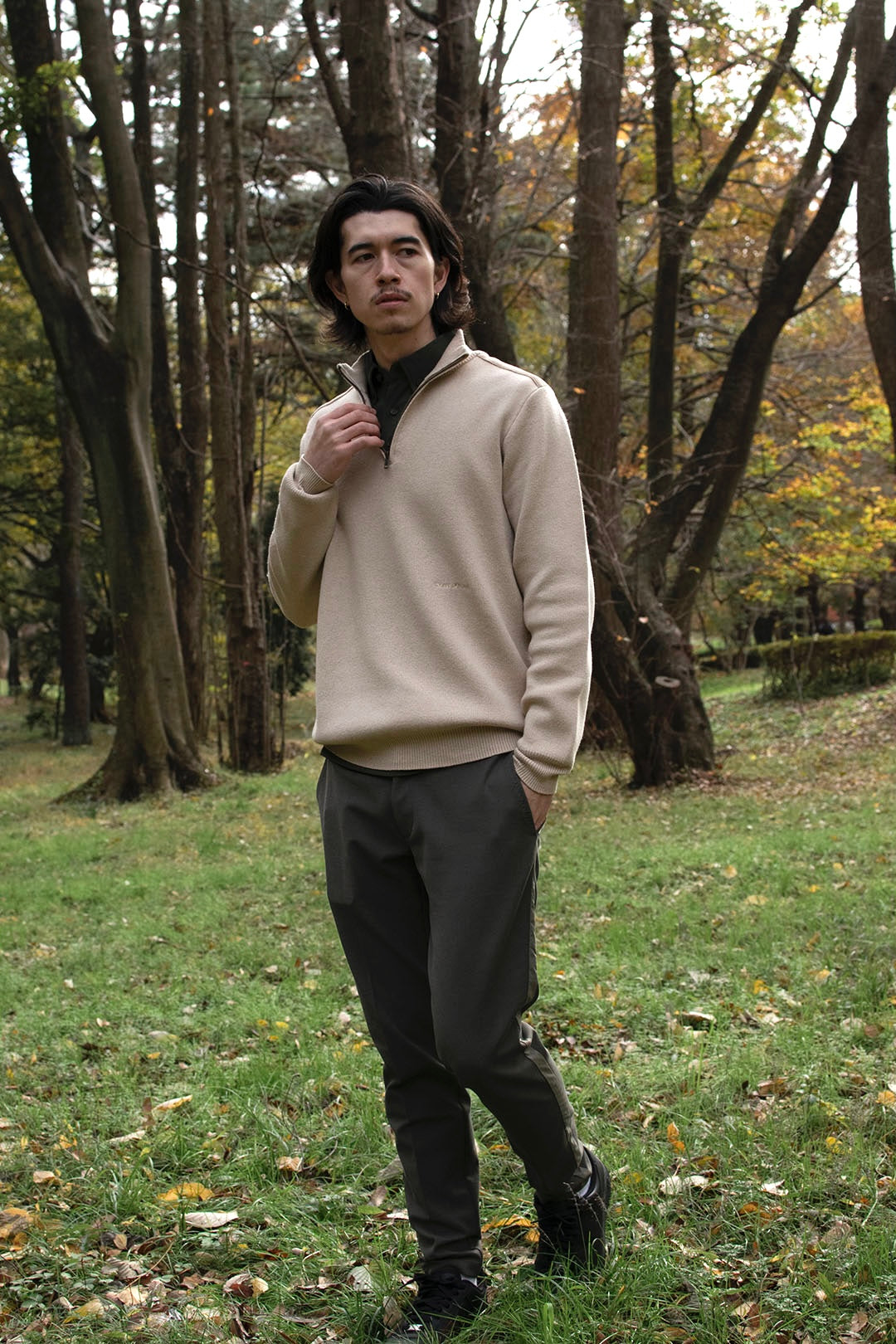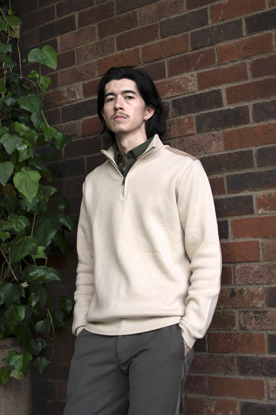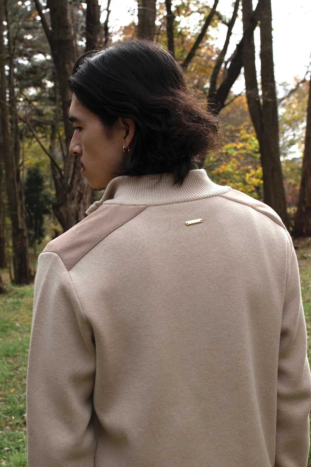 スエードパッチハーフジップセーター / ベージュ